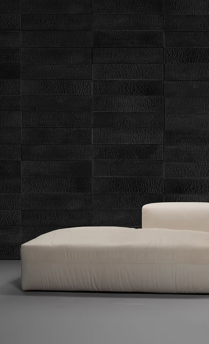 Колекція паркету Carbon – це класика серед видів підлогового покриття, яка бездоганно вписується в будь-який простір і додає нотку тепла та затишку дому. Відродження давньої японської техніки та її майстерне керування вогнем дають життя унікальній колекції, що складається з одного елемента. Це унікальні чорні панелі з майже глянцевою поверхнею. Для облицювання стіни постачається у вигляді дощок заввишки 3 метри, що є важливою деталлю, яку слід враховувати під час проектування стіни.