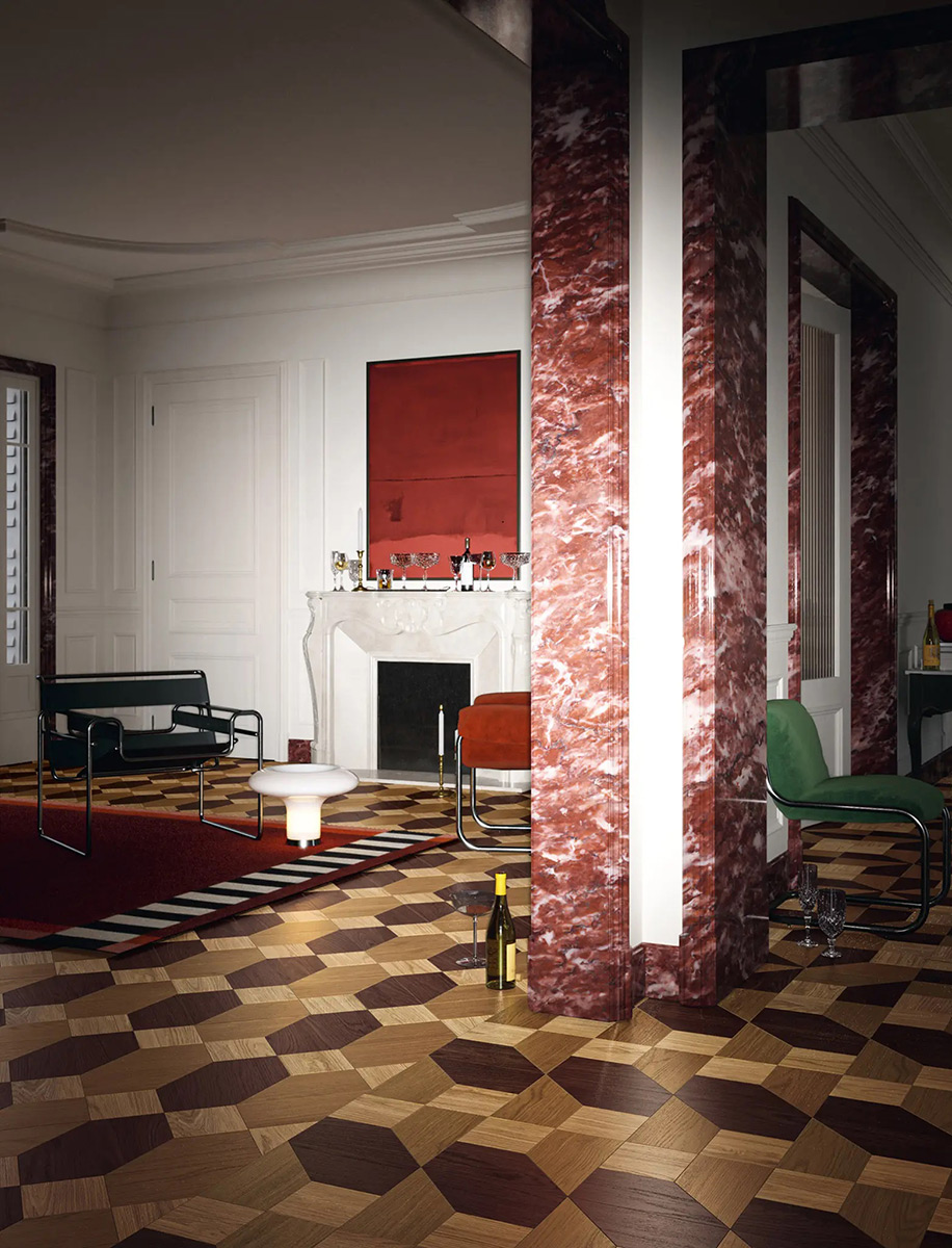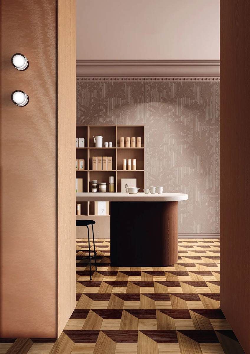 Паркет Ton – це Бальні зали, оттоманські резиденції з полірованою підлогою, ексклюзивні лондонські джентльменські клуби. Ton – це дерев’яний квадрат з інкрустацією з дуба. Він відрізняється теплими та яскравими кольорами, які підкреслюють природну текстуру дерева та його сутність. Геометричний модуль, безліч візерунків укладання, як відлуння вищого суспільства, яке відрізняється правилами.