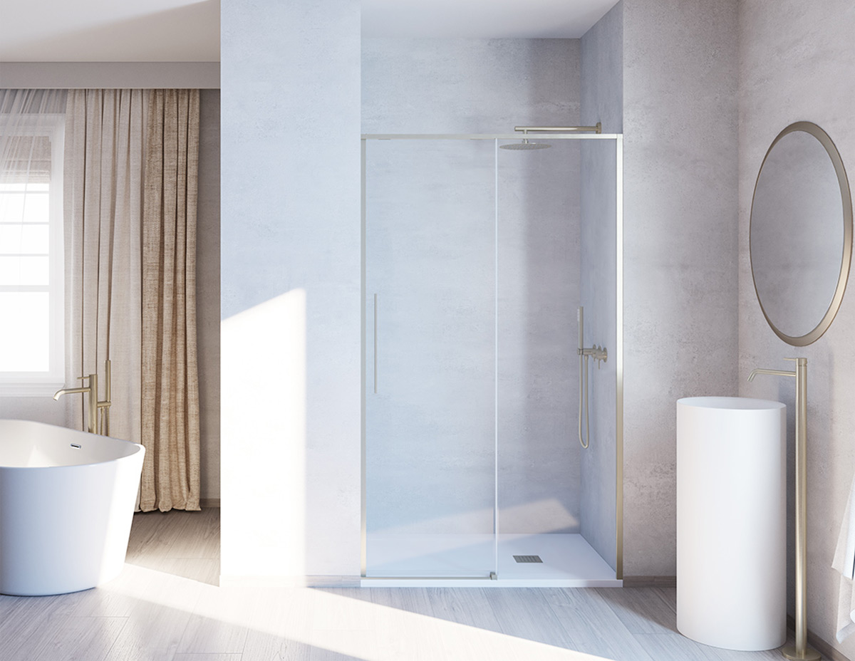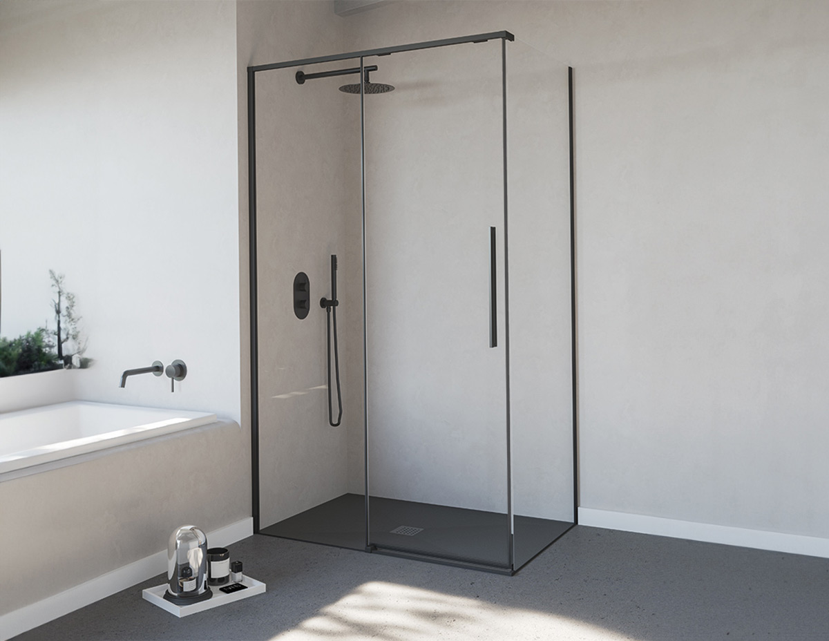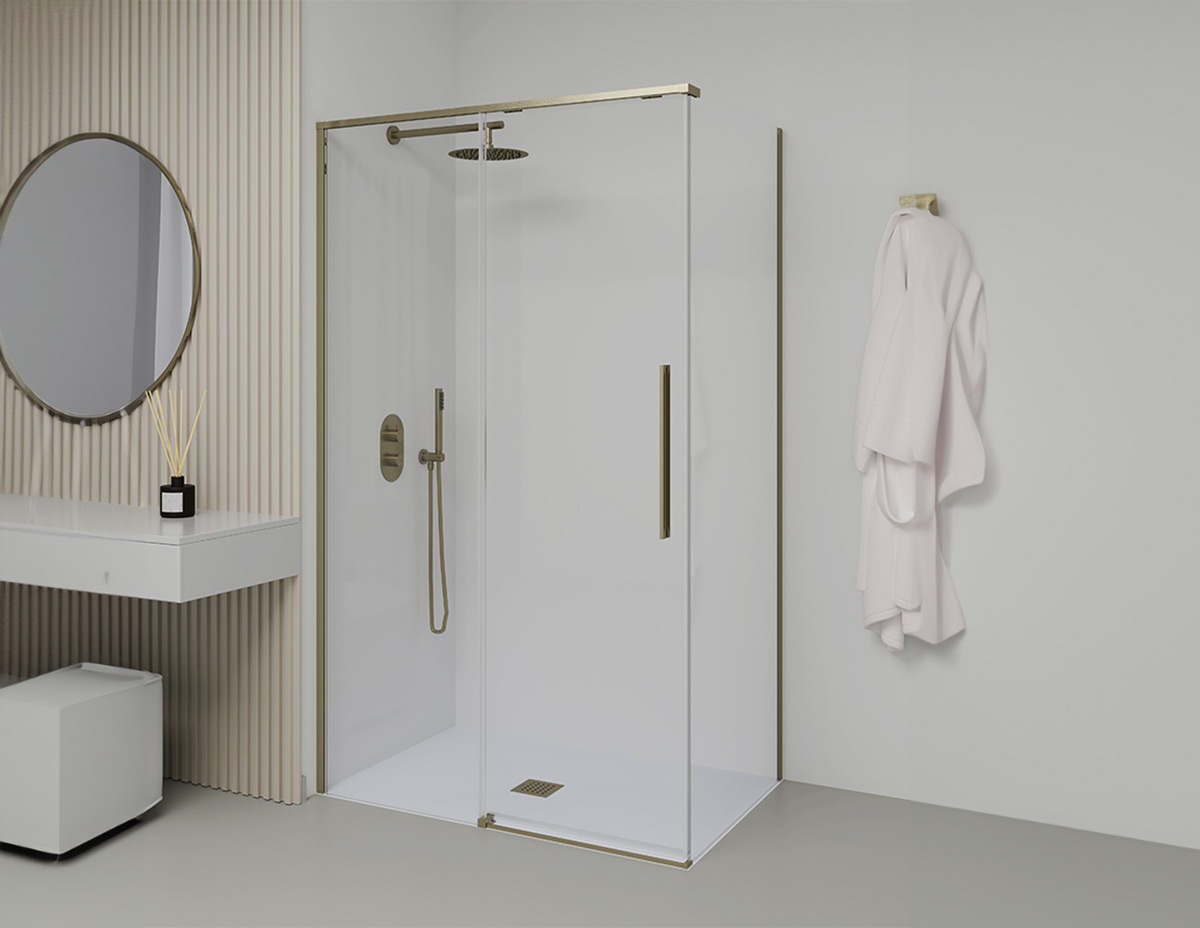 Душові кабіни та перегородки Slim з алюмінієвого та скляного розсувного, поворотного та нерухомого скла. Колекція, яка зачаровує стилем у поєднанні з кольоровими, металевими або хромованими профілями. Асортимент Slim є надзвичайно універсальним завдяки кольоровим, металевим профілям та загартованому склу товщиною 8mm для створення стильного та сучасного простору або для більш традиційного підходу.