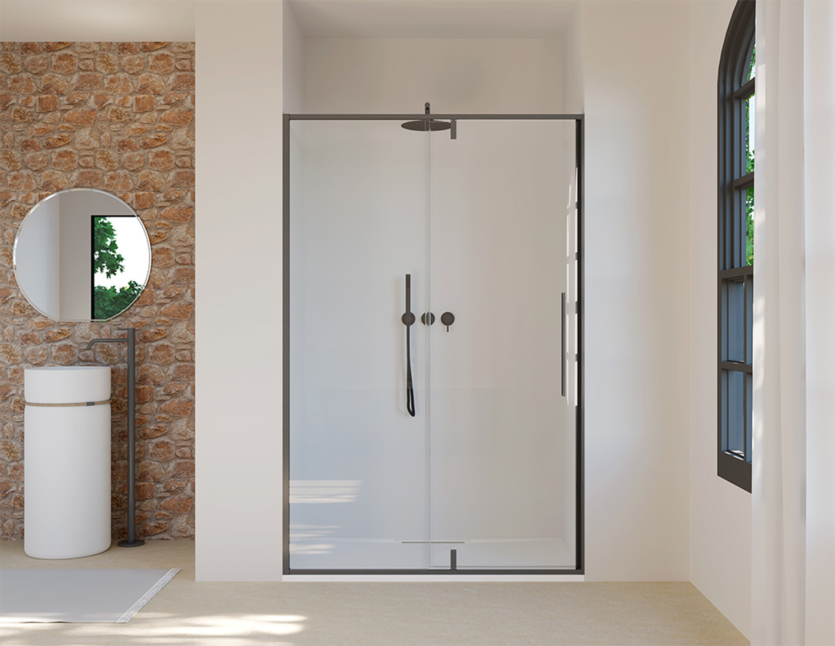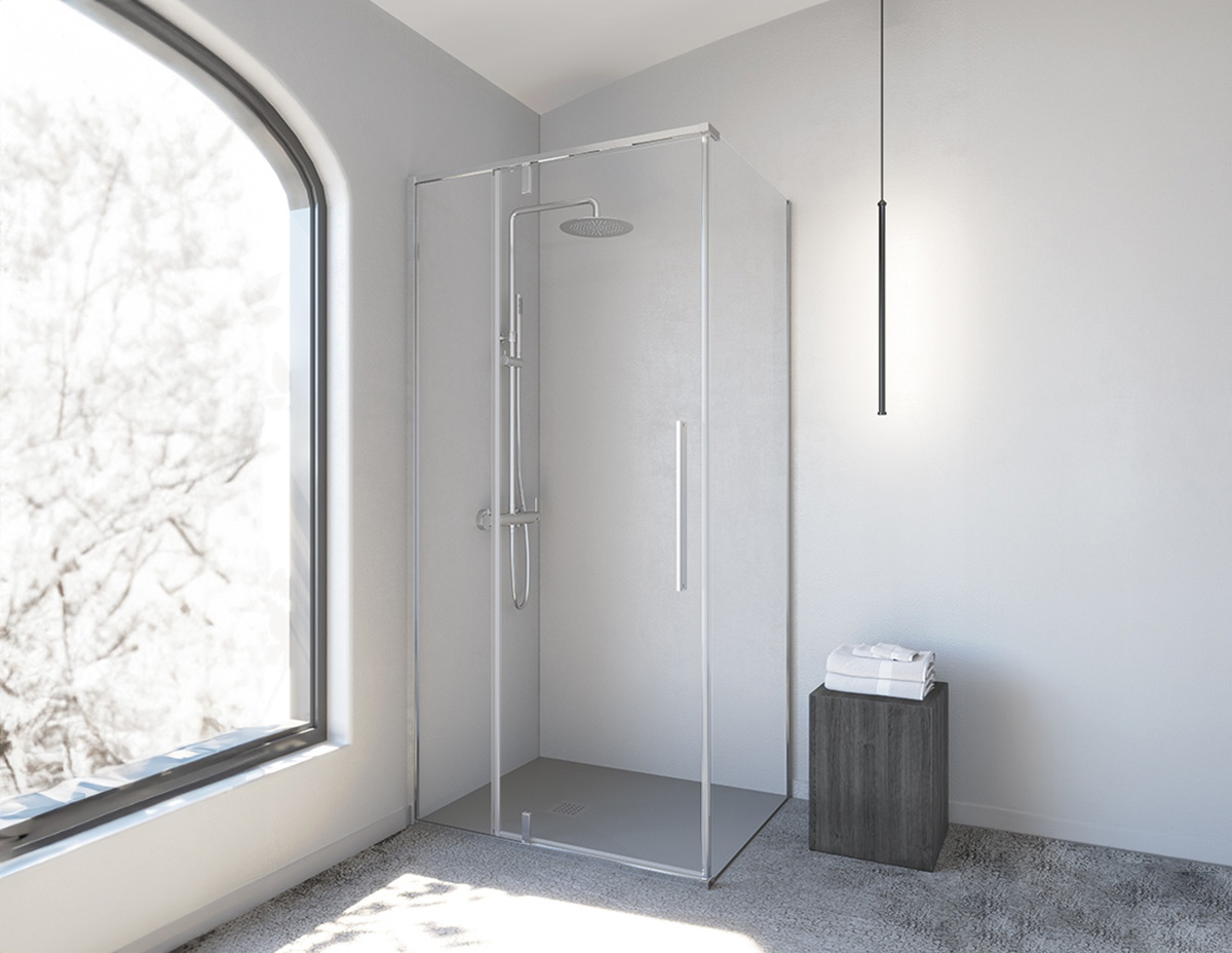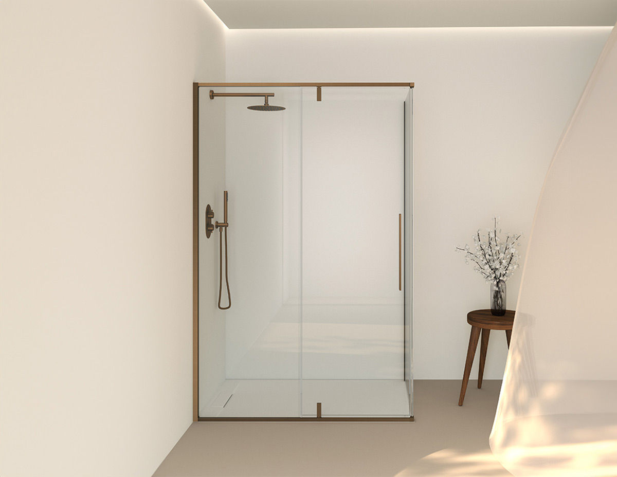 Душові кабіни та перегородки Slim з алюмінієвого та скляного розсувного, поворотного та нерухомого скла. Колекція, яка зачаровує стилем у поєднанні з кольоровими, металевими або хромованими профілями. Асортимент Slim є надзвичайно універсальним завдяки кольоровим, металевим профілям та загартованому склу товщиною 8mm для створення стильного та сучасного простору або для більш традиційного підходу.