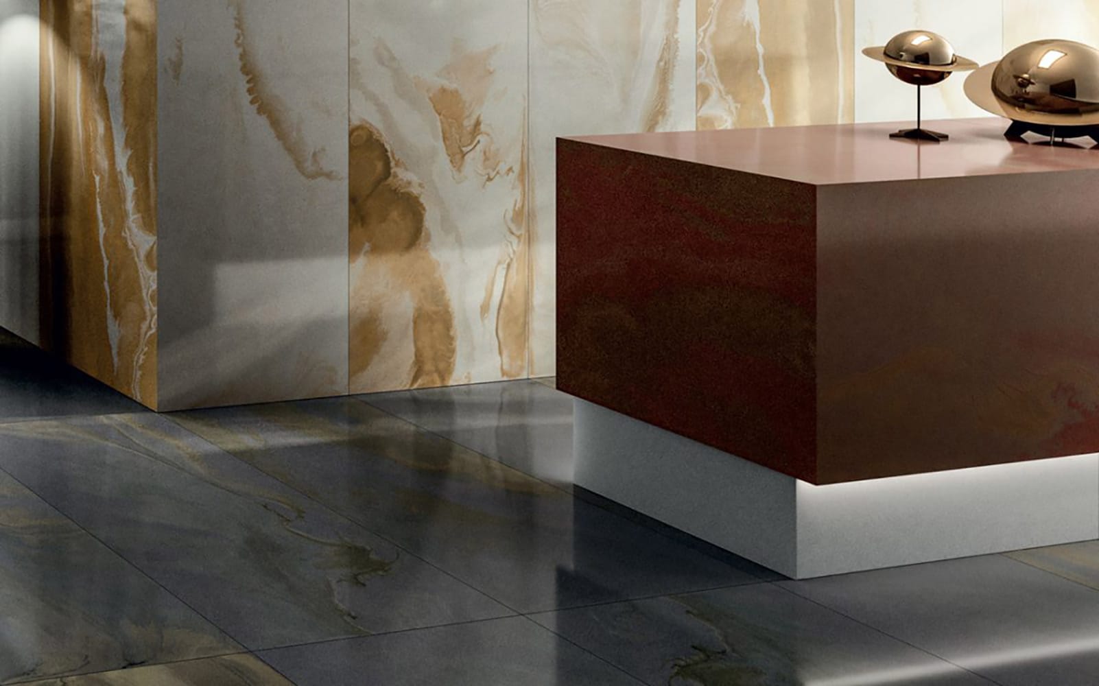 Колекція Cosmic Marble – всесвіт у вашому домі, дистанційні світи та повсякденне життя. Поверхня й атмосфера місяця та інших планет надихнули на створення забарвлення, форми і текстури, які пробуджують чудові космічні емоції, пережиті космонавтами минулого та очікують астронавтів майбутнього. Благородний штрих, здатний подарувати вашому будинку вишуканий і витончений образ, зухвалий і, одночасно з цим, мрійливий. Тому що по той бік всесвіту присутнє щось більше.