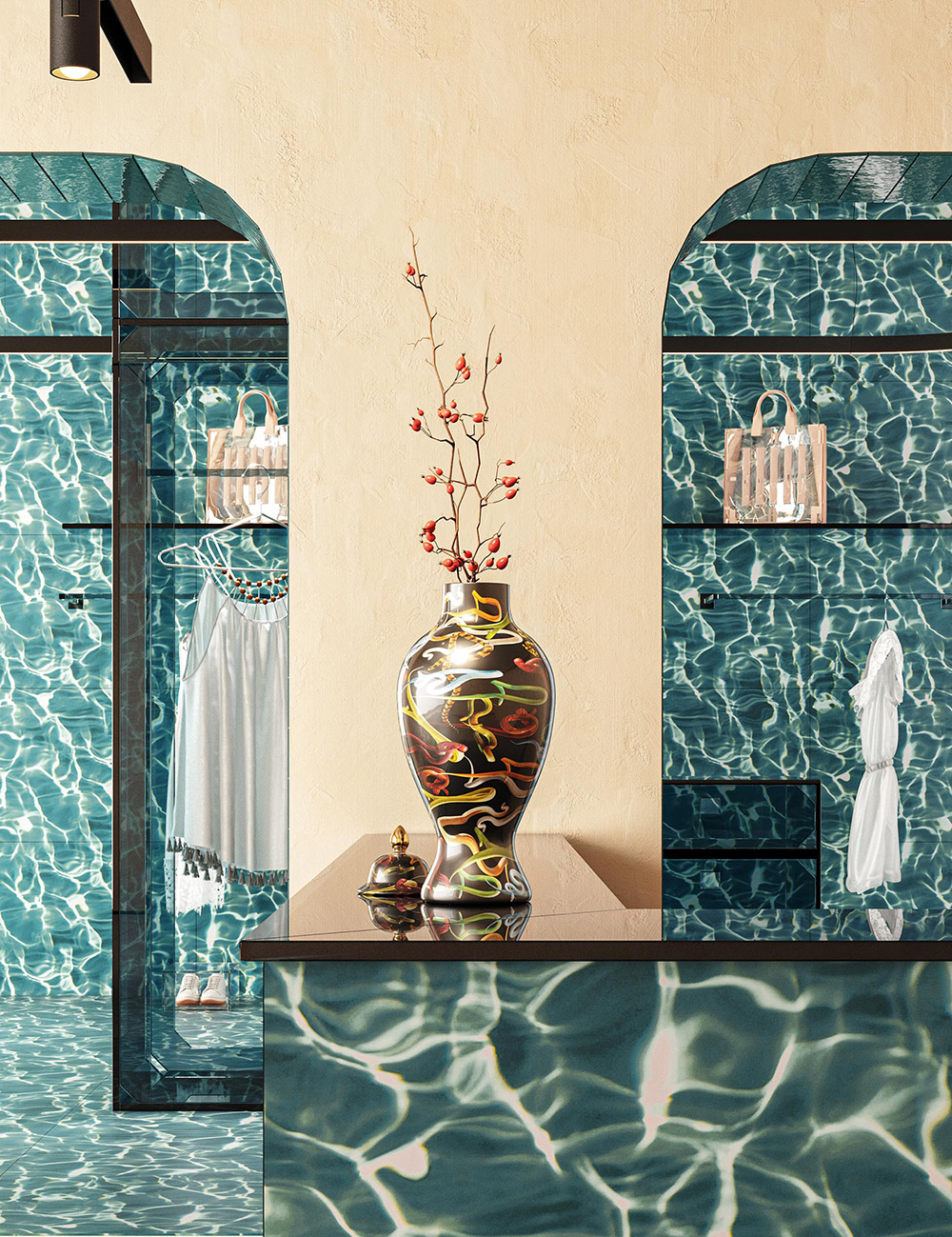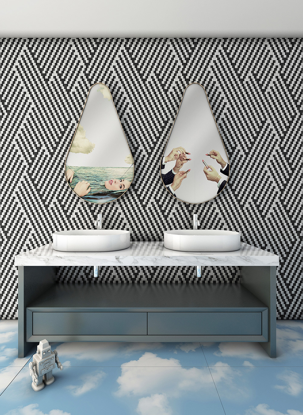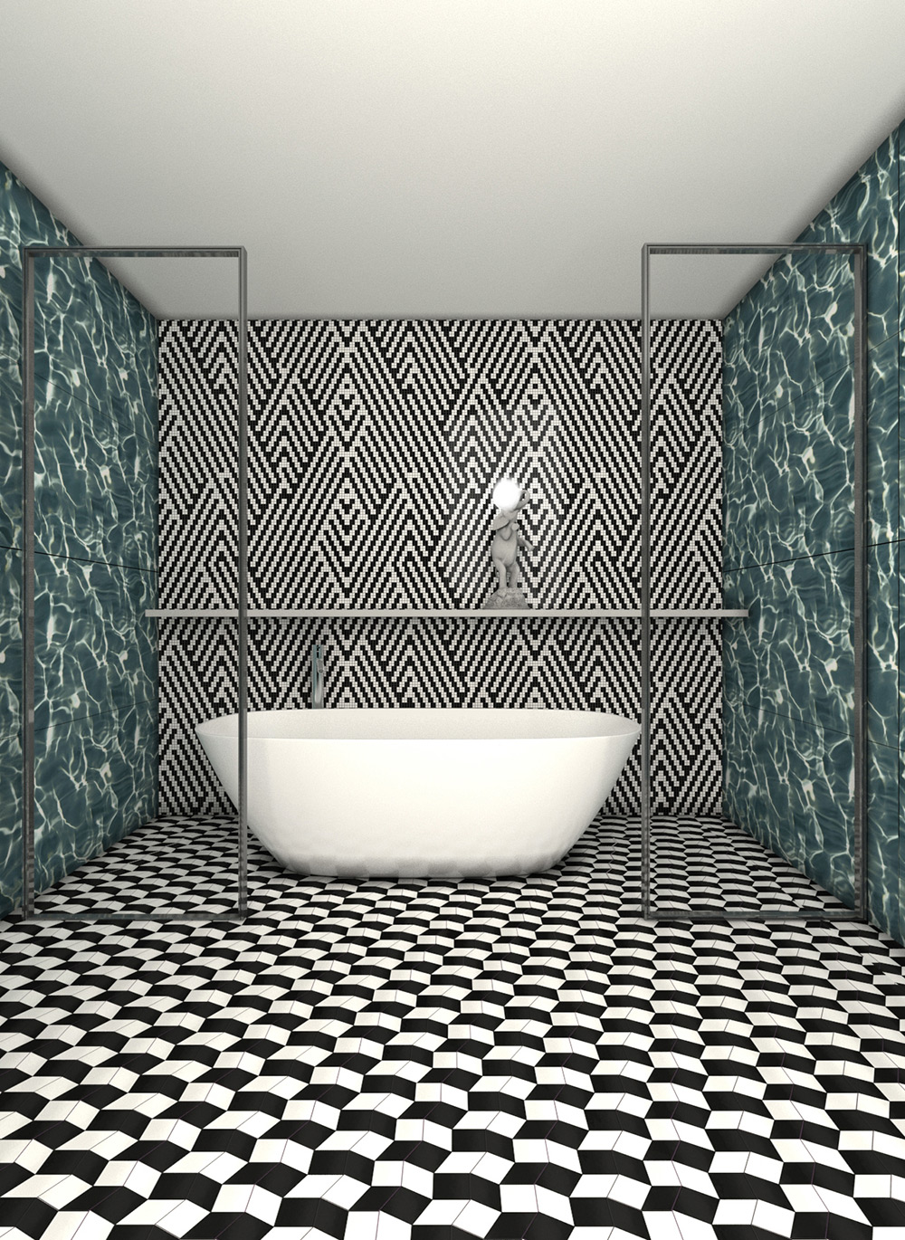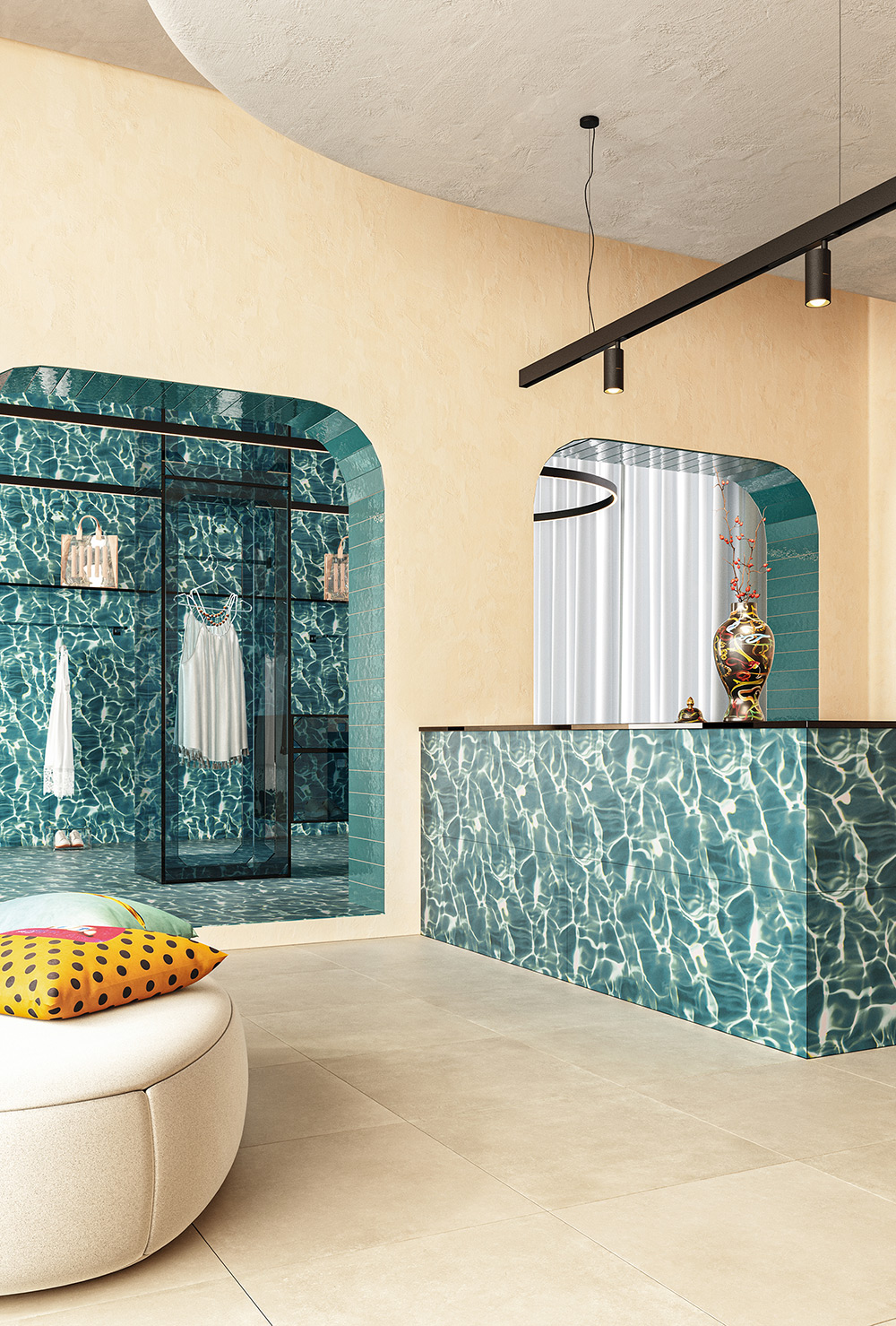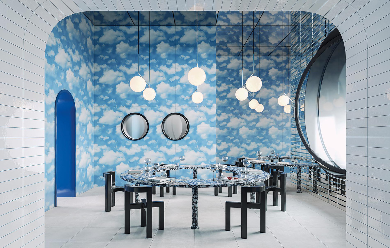 Плитка Elements – це серія, головними героями якої є природа та її елементи, вода та хмари. Завдяки великому розміру плитки 60×120 см можна комбінувати з малюнками A+B. Можна створювати середовище магії зовнішнього світу в інтер’єрі. Таким чином, стає можливою прогулянка блакитним небом, усіяним м’якими хмарами, або відчуття оповитості кришталево чистою водою, де сприйняття простору радикально перевертається.