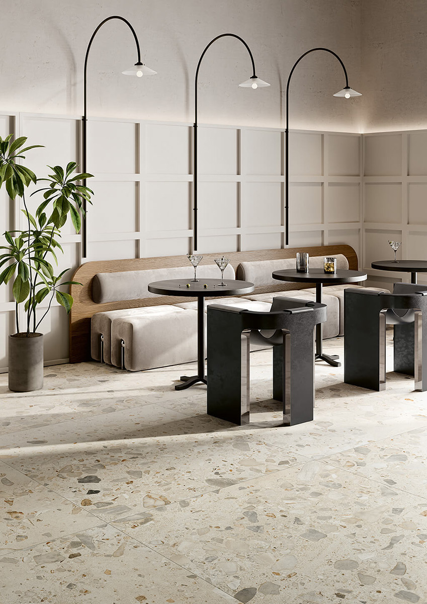 Плитка I Ciottoli – це колекція гранітної кераміки, натхненна специфічним типом вапняку, що характеризується камінням та зернами різного розміру на поверхні. У варіанті Sabbia ефект ледь помітний, тоді як у версії Sassi він більш виражений. Шарм стародавнього італійського каменю відроджується в сучасних текстурах, доступних у п’яти кольорах, що забезпечує універсальні рішення для підлоги та стін з вишуканою естетикою. Доступні кольори включають Avorio, Grigio, Anthracite, Beige та Argilla, що відкриває широкий спектр можливостей для персоналізації інтер’єру. Цей вибір пропонує безліч дизайнерських можливостей.