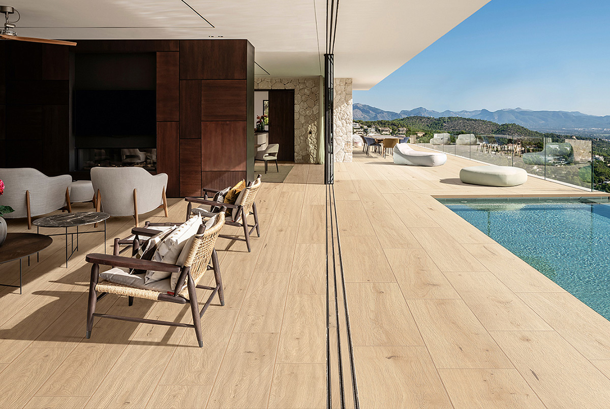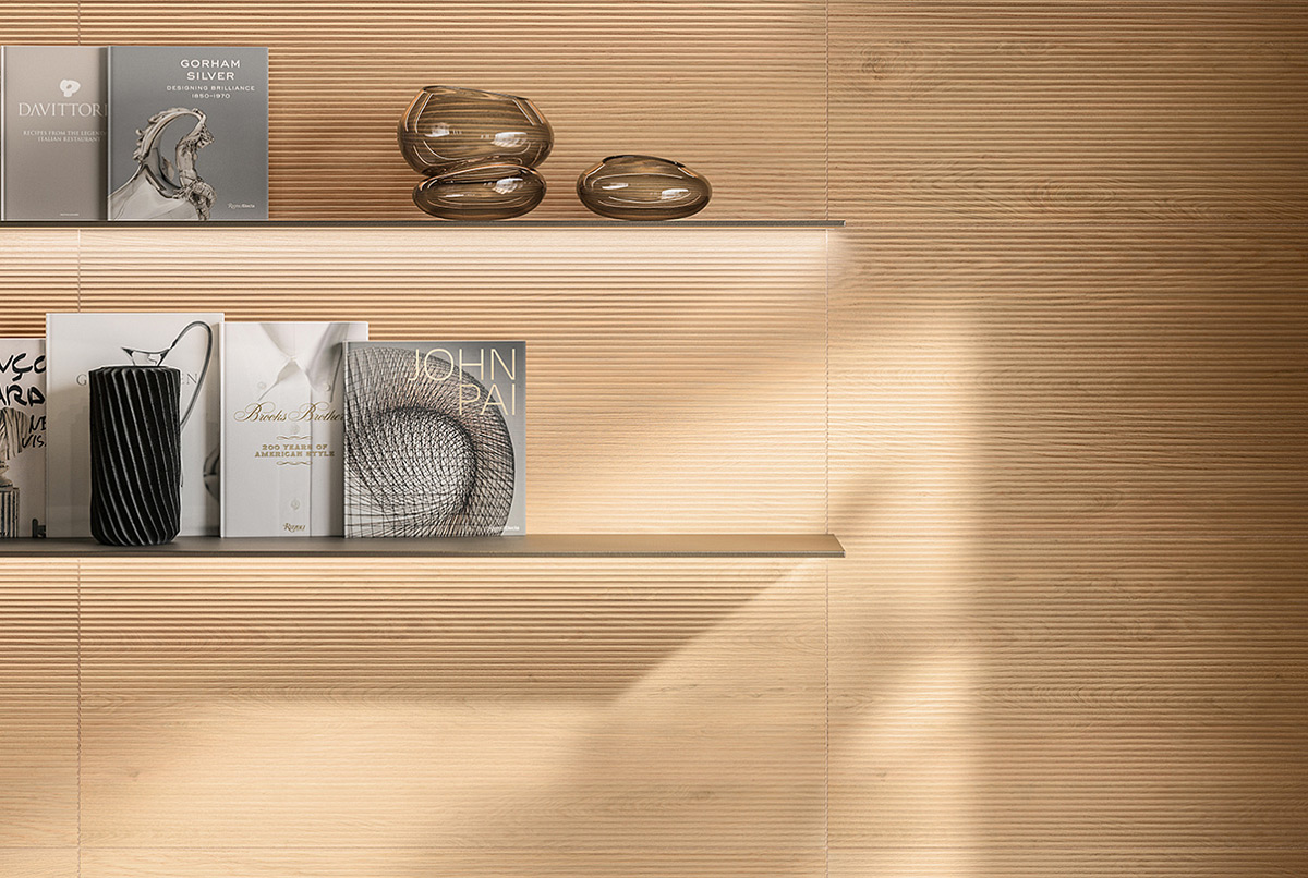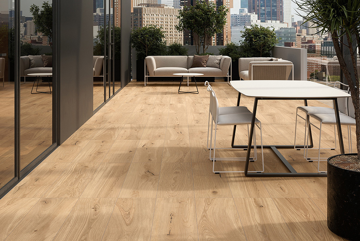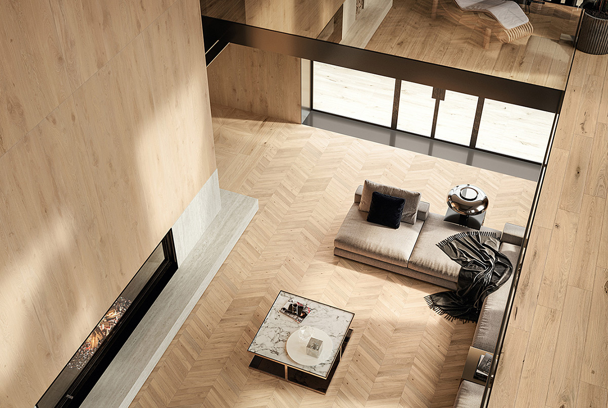 Плитка Log – це перша колекція керамограніту та настінної плитки з ефектом натурального дуба. На натуральній деревині сучки, тріщини та зашпакльовані ділянки – це унікальні деталі, що надають матеріалу характерної привабливості. Log інтерпретує ці природні характеристики, пропонуючи два варіанти малюнка, де Natural Selection відтворює однорідний тон та характерний для дуба V-подібний малюнок волокон, а Forest Selection відрізняється невеликими червоточинами в деревині та характерним для дуба V-подібним малюнком волокон із яскраво-вираженим різнотоном. Серія доступна в п’яти натуральних відтінках: сучасна інтерпретація вибіленої деревини Bright Oak, солом’яний колір з відтінками горіха Icon Oak, теплий медовий тон з насиченими бурштиновими деталями Amber Oak, світло-коричневий тон з горіховими відтінками Deep Oak і горіховим фоном. Керамограніт виробляється в широкому діапазоні форматів: 120×278 см товщина матеріалу 6mm, 20×180 см товщина – 9.5mm, 20×120 см і 18.5×150 см товщина – 9mm, а також 60×120 см Outdoor см. Настінна плитка у форматі 50×120 см доповнює колекцію м’яким рельєфним візерунком.