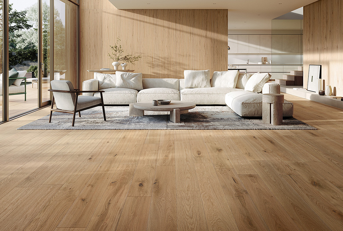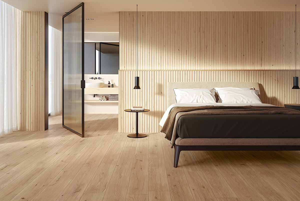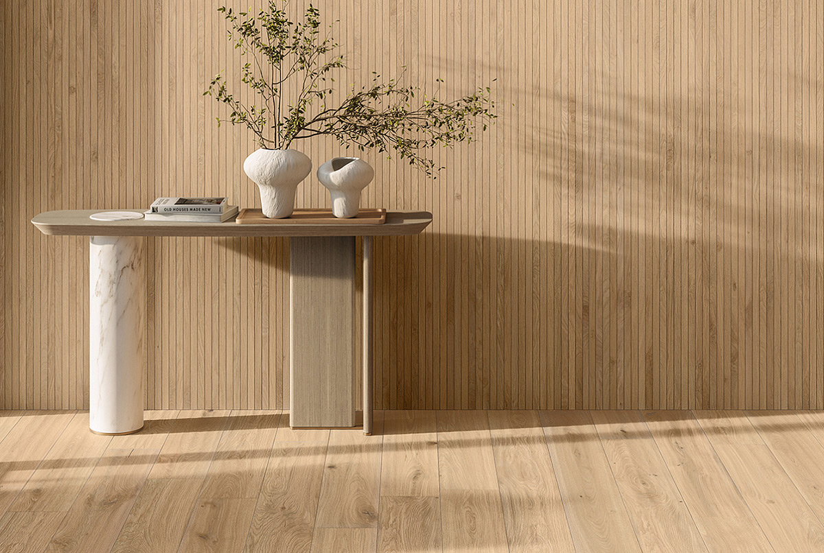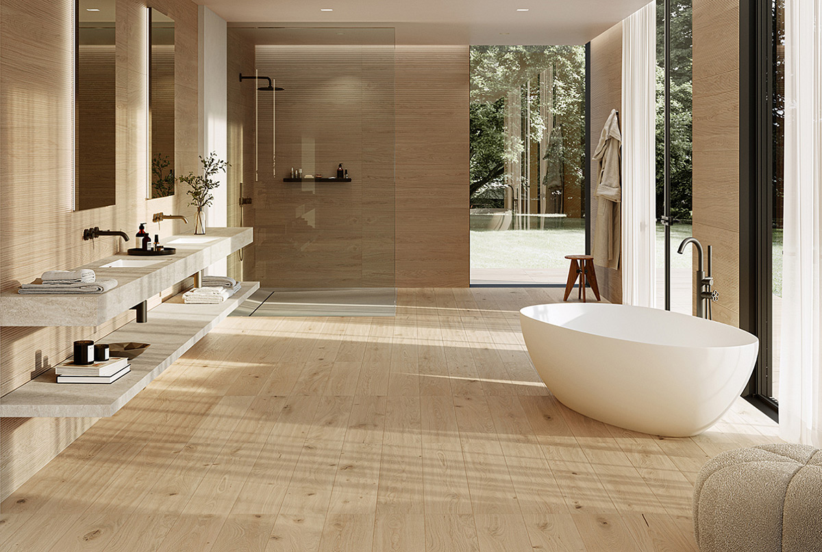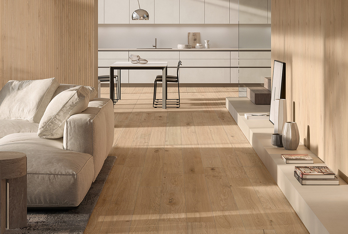 Плитка Log – це перша колекція керамограніту та настінної плитки з ефектом натурального дуба. На натуральній деревині сучки, тріщини та зашпакльовані ділянки – це унікальні деталі, що надають матеріалу характерної привабливості. Log інтерпретує ці природні характеристики, пропонуючи два варіанти малюнка, де Natural Selection відтворює однорідний тон та характерний для дуба V-подібний малюнок волокон, а Forest Selection відрізняється невеликими червоточинами в деревині та характерним для дуба V-подібним малюнком волокон із яскраво-вираженим різнотоном. Серія доступна в п’яти натуральних відтінках: сучасна інтерпретація вибіленої деревини Bright Oak, солом’яний колір з відтінками горіха Icon Oak, теплий медовий тон з насиченими бурштиновими деталями Amber Oak, світло-коричневий тон з горіховими відтінками Deep Oak і горіховим фоном. Керамограніт виробляється в широкому діапазоні форматів: 120×278 см товщина матеріалу 6mm, 20×180 см товщина – 9.5mm, 20×120 см і 18.5×150 см товщина – 9mm, а також 60×120 см Outdoor см. Настінна плитка у форматі 50×120 см доповнює колекцію м’яким рельєфним візерунком.
