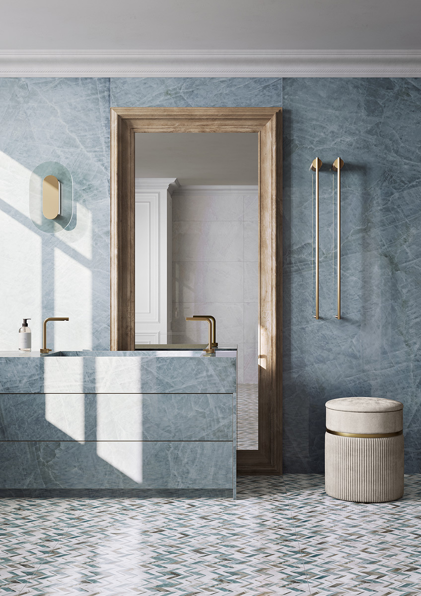 Плитка Sobe – це колекція, що використовує красу кварцу, природного матеріалу, з якого виготовлений онікс, щоб надати середовищу звивистості та тепла, а також вивести справжню душу поверхонь з тіні. Дві варіації: Acqua, свіжа та яскрава, як дзеркало неба, та Avorio, синонім чистоти, з їхньою строкатою та прозорою поверхнею створюють інтенсивну та природну атмосферу з вишуканим стилем. Виготовлена з високоякісного керамограніту, колекція Sobe також доступна у великих тонких плитах, ідеальних для підкреслення кольорів та відтінків. Асортимент декору та мозаїки з вишуканими інкрустаціями збагачує будь-який тип середовища, підкреслюючи текстуру.