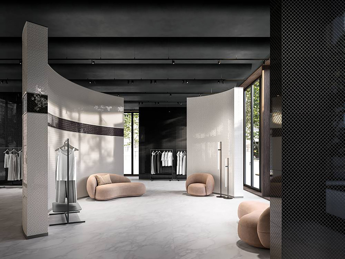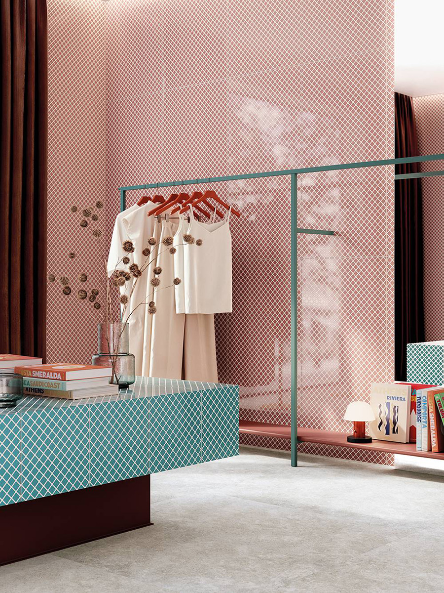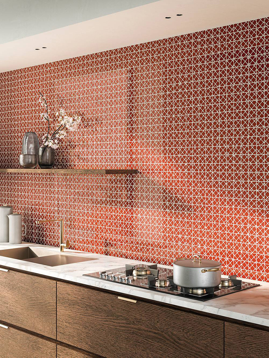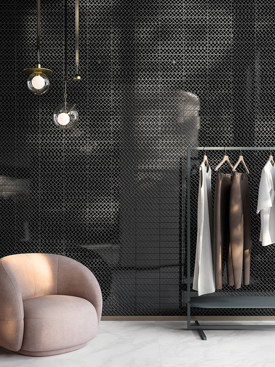 Плитка Upside – це вибух кольору, графічного дизайну та блиску. Результатом є розширена, ультрадекоративна пропозиція з вражаючим візуальним ефектом та, перш за все, безмежним потенціалом. Геометричний візерунок – це відмінний елемент, а також своєрідна ланка між двома лініями, яку можна застосовувати до кількох форматів, навіть великих, які час від часу змінюють своє композиційне сприйняття. Завдяки строкатій кольоровій палітрі, що складається з восьми відтінків, з якими можна гратися в комбінаціях і таким чином створювати атмосфери різної інтенсивності. Мозаїка 30×30, єдиний формат оригінального дизайну, складається з випадково підібраних плиток 5×5, на які потім розбивається сітка. У новому варіанті цегли 6,3×29 сітку можна переміщувати шляхом укладання в шаховому порядку, створюючи динамічний ефект на стінах. Таким чином, Upside відображає не лише еволюцію продукту, але й дизайну.